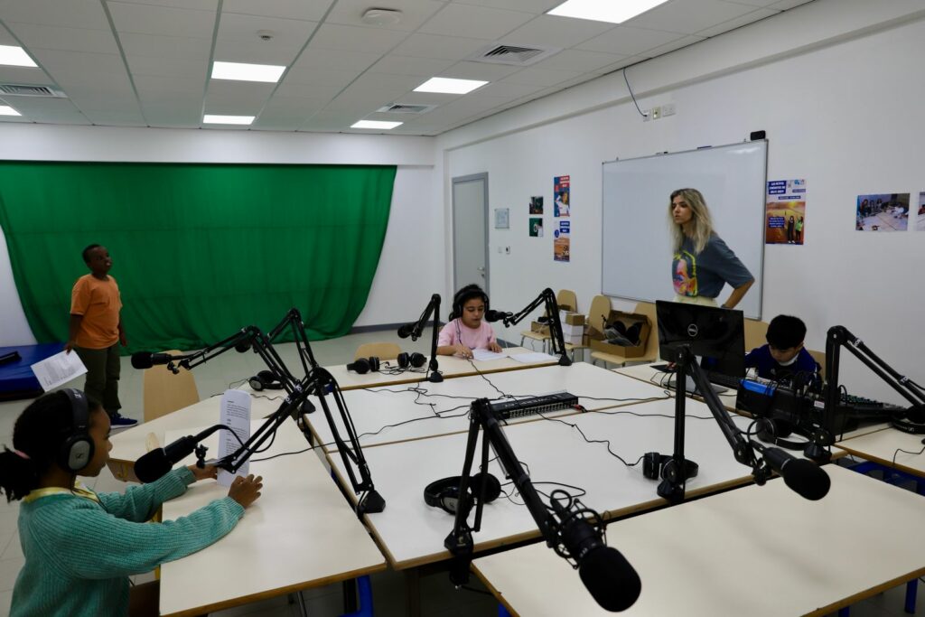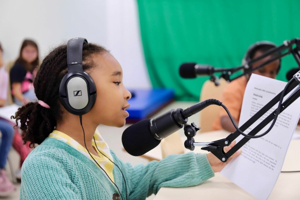 C’est donc tout naturellement que la classe de CM1 (groupe LV1) se rend régulièrement dans le studio de la Webradio de l’établissement. L’objectif ? S’approprier la langue de Shakespeare à travers l’exercice journalistique.